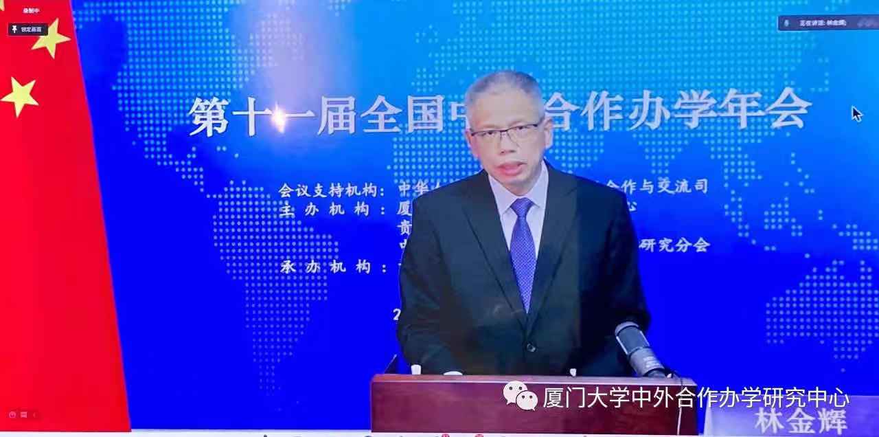 厦门大学中外合作办学研究中心主任、中国高等教育学会中外合作办学研究分会理事长林金辉作主旨报告