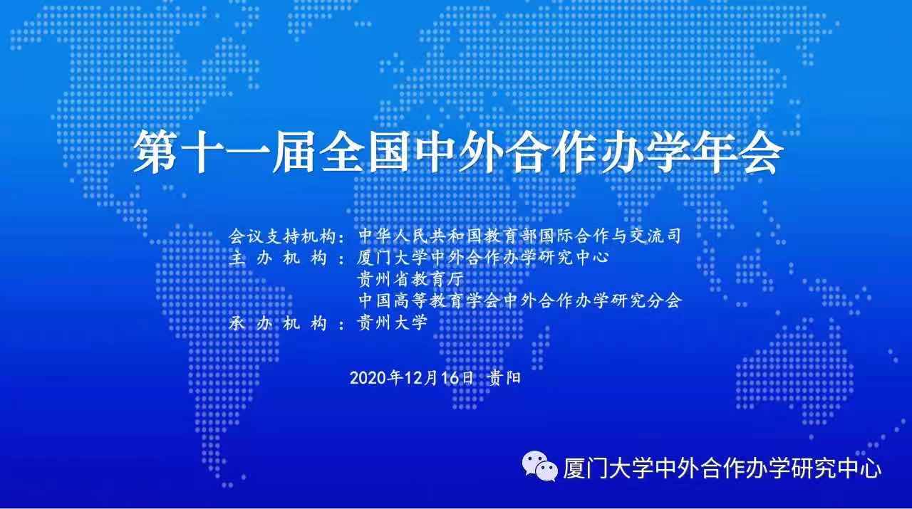 2020年12月16日,第十一届全国中外合作办学年会隆重召开,会期一天。由于疫情防控形势要求,会议创新举办思路和模式,在线上举办,主会场设贵阳。
