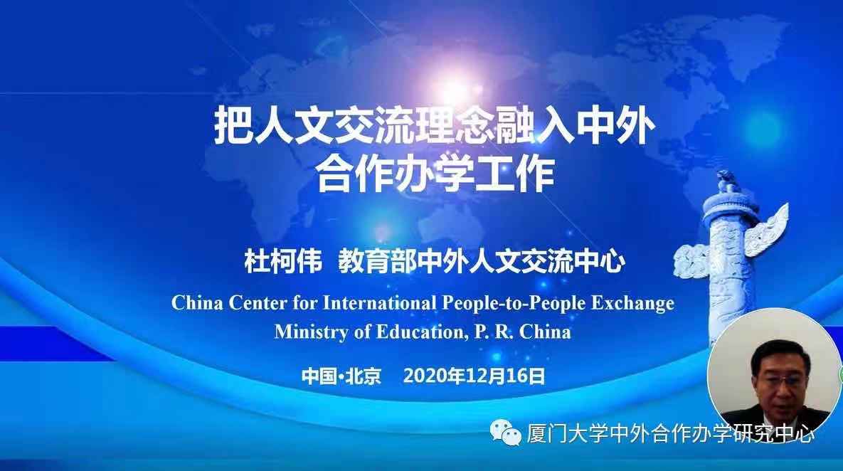 2020年12月16日,第十一届全国中外合作办学年会线上举行。年会由教育部国际司为会议支持机构,厦门大学中外合作办学研究中心(教育部中外合作办学理论研究基地、政策咨询平台和中心)、贵州省教育厅、中国高等教育学会中外合作办学研究分会共同主办,贵州大学承办。年会同时为中国高等教育学会中外合作办学研究分会第五届学术年会。教育部国际司办学处处长毛冬敏出席并在开幕式讲话。大会组委会主任、厦门大学副校长杨斌,大会组委会主任、贵州省教育厅党组成员、省委教育工委委员、省教育工会主席王慧,中国高等教育学会副秘书长郝清杰,中国工程院院士、贵州大学校长宋宝安在开幕式上致欢迎词。开幕式由大会主席、厦门大学中外合作办学研究中心主任、中国高等教育学会中外合作办学研究分会理事长林金辉主持。教育部中外人文交流中心主任杜柯伟、教育部留学服务中心副主任杨凌作专题报告。林金辉代表组委会作题为《加大改革力度,以中外合作办学高质量建设服务新发展格局》的主旨报告。十多位中外合作办学领域专家学者围绕未来五年和更长时期中外合作办学如何在高质量发展方面实现新突破、形成新局面进行学术研讨,建言献策。年会秉持历届“门槛准入、总量控制”原则,从2000多位报名者中遴选1800名代表参会。年会以习近平新时代中国特色社会主义思想为指导,坚持坚定正确的社会主义政治方向和中外合作办学研究的学术方向,坚持服务教育部中外合作办学工作的正确导向。年会对于推进中外合作办学战线深入学习贯彻习近平总书记关于教育的重要论述和五中全会精神,落实全会《建议》部署,科学编制地区和学校“十四五”教育对外开放和中外合作办学发展规划并健全规划落实机制,对于为政府、中外合作办学者、校长以及专家学者提供广阔的平台,促进经验交流、规律探索和实质合作,服务政府决策、指导办学实践、培养人才队伍、引导社会舆论,为未来五年和更长时期中外合作办学高质量发展提供坚强支撑,具有重要意义。