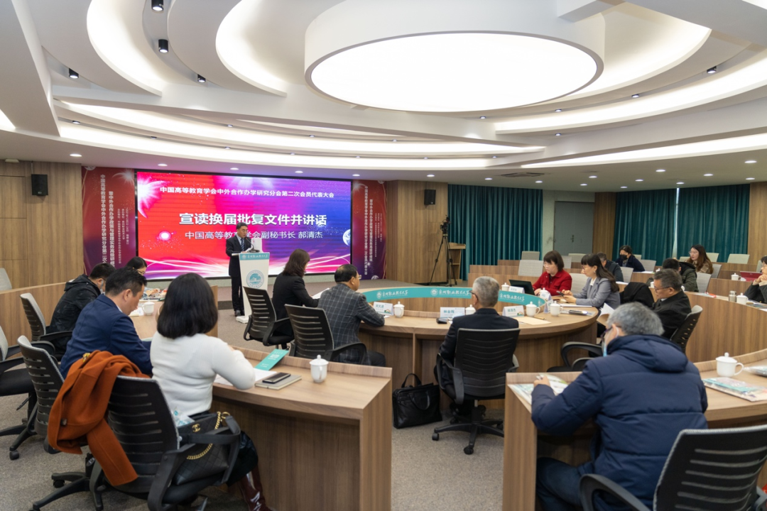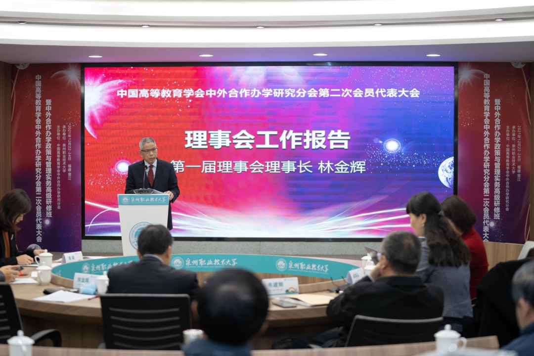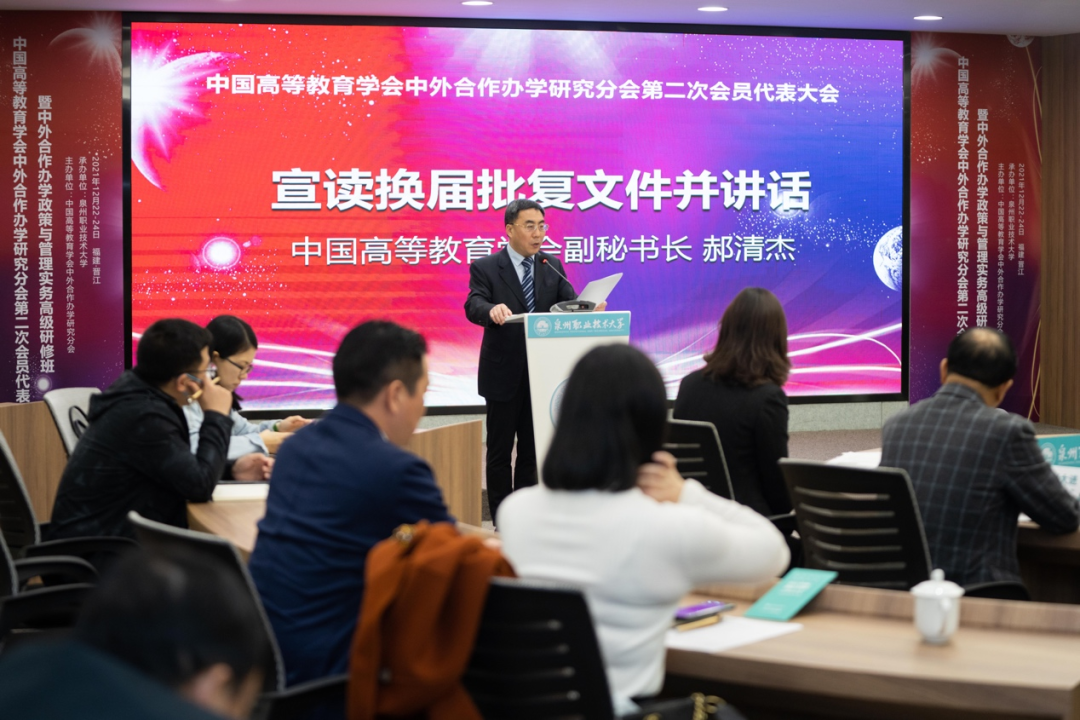 中国高等教育学会副秘书长郝清杰专程赴泉州出席活动。他代表中国高等教育学会宣读《关于同意中国高等教育学会中外合作办学研究分会换届方案的批复》 ,并发表讲话。