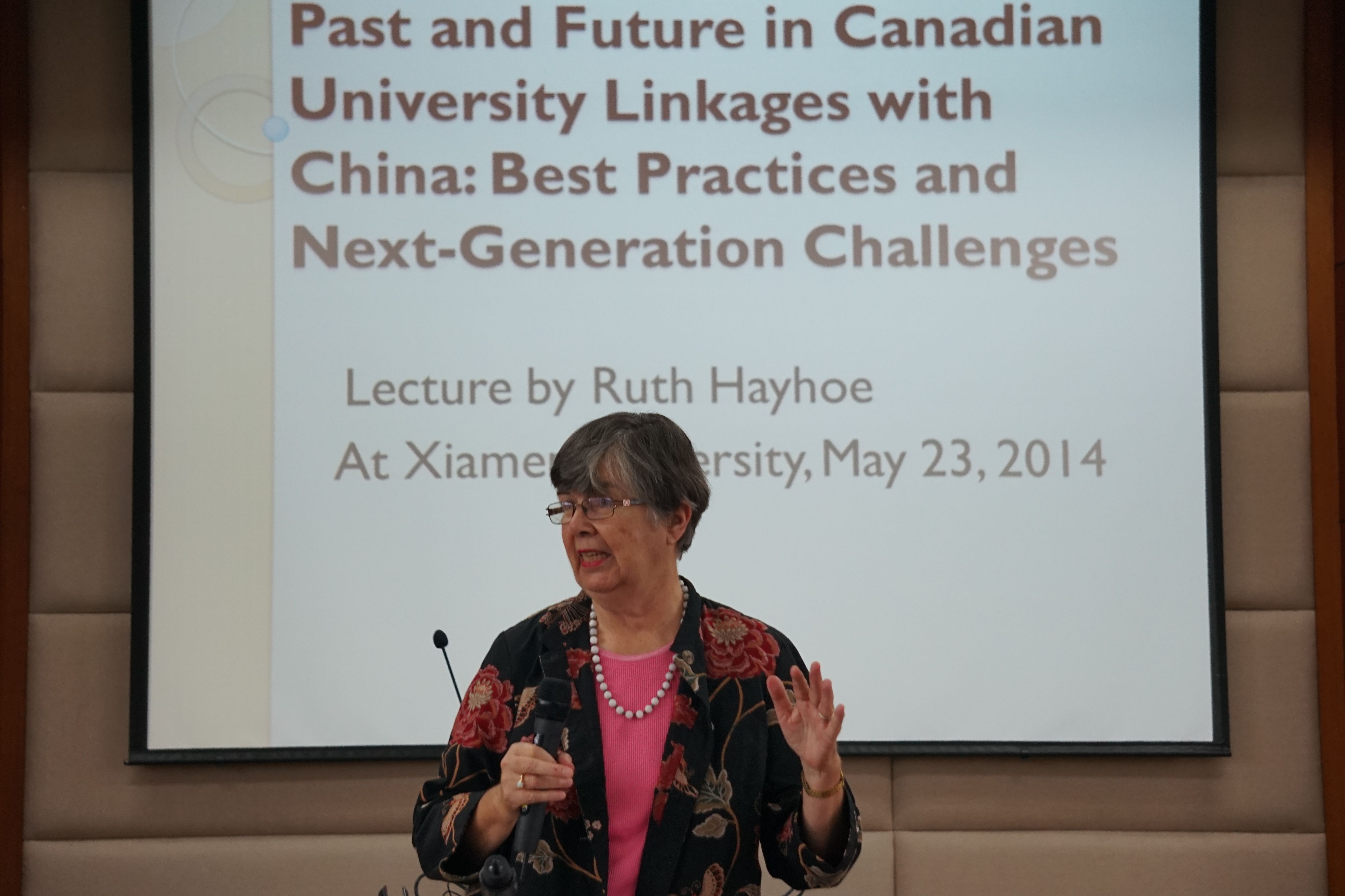 厦门大学中外合作办学研究中心国际顾问委员会委员、加拿大驻华使馆原教育参赞、世界比较教育与国际教育学会原理事长、加拿大多伦多大学安大略教育研究院教授Ruth Hayhoe在厦门大学为中外合作办学博士生开设专题讲座