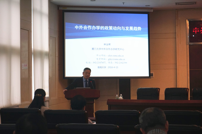 在调研过程中,林金辉教授还应邀就中外合作办学发展形势、监管体系和政策动向等问题向相关高校领导及中层干部,以及部分省教育厅国际处相关负责人作了5场学术报告。