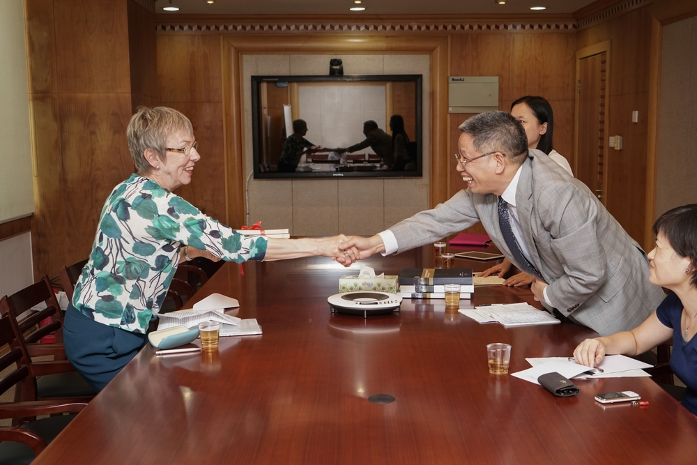 林主任向客人介绍了中外合作办学发展现状以及非法人设置中外合作办学机构的性质。双方还就共同感兴趣的中外合作办学以及英国高等教育质量保障的相关问题进行了热烈的讨论和交流。林主任代表厦门大学中外合作办学研究中心向客人赠送了中心近期出版的《中外合作办学质量建设研究》、《中外合作办学:政策、管理与质量保障》(上、下册),Ella也向中心赠送了礼物;林主任盛情邀请Ella出席将于今年11月在深圳举办的“国际大学校长研讨会(深圳)暨第五届全国中外合作办学年会”[教育部国际司为会议支持机构,本研究中心与深圳市教育局、中国高教学会中外合作办学研究分会(筹)联合主办,香港中文大学(深圳)承办],Ella愉快地接受了邀请。