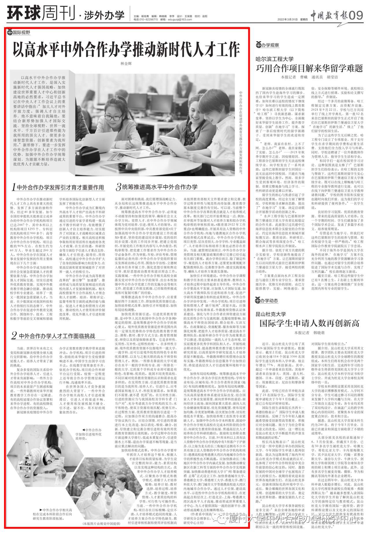 一是中外合作办学成为培养经济社会发展急需紧缺人才的重要依靠力量。中外合作办学加强人才国际交流,切实引进境外优质教育资源,实现中外教育教学理念融合创新,推动高校学科专业建设,培养了一批又一批国家急需紧缺人才。当前,在少数国家对我国科技和人才持续打压的情况下,中外合作办学在促进中外教育交流合作,围绕科学、技术、工程和数学等前沿交叉领域和基础学科培养国际化创新型人才方面发挥了积极作用。