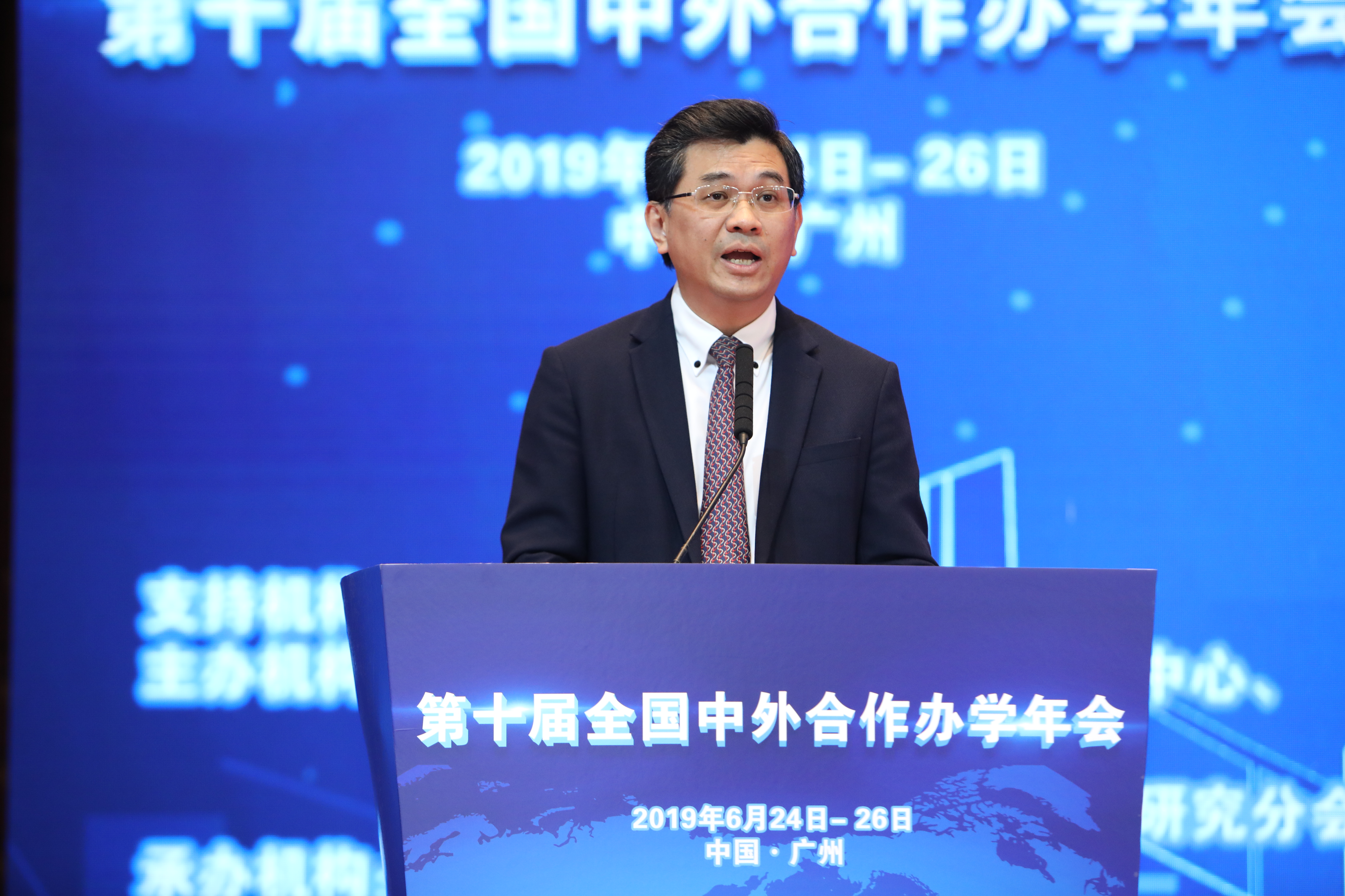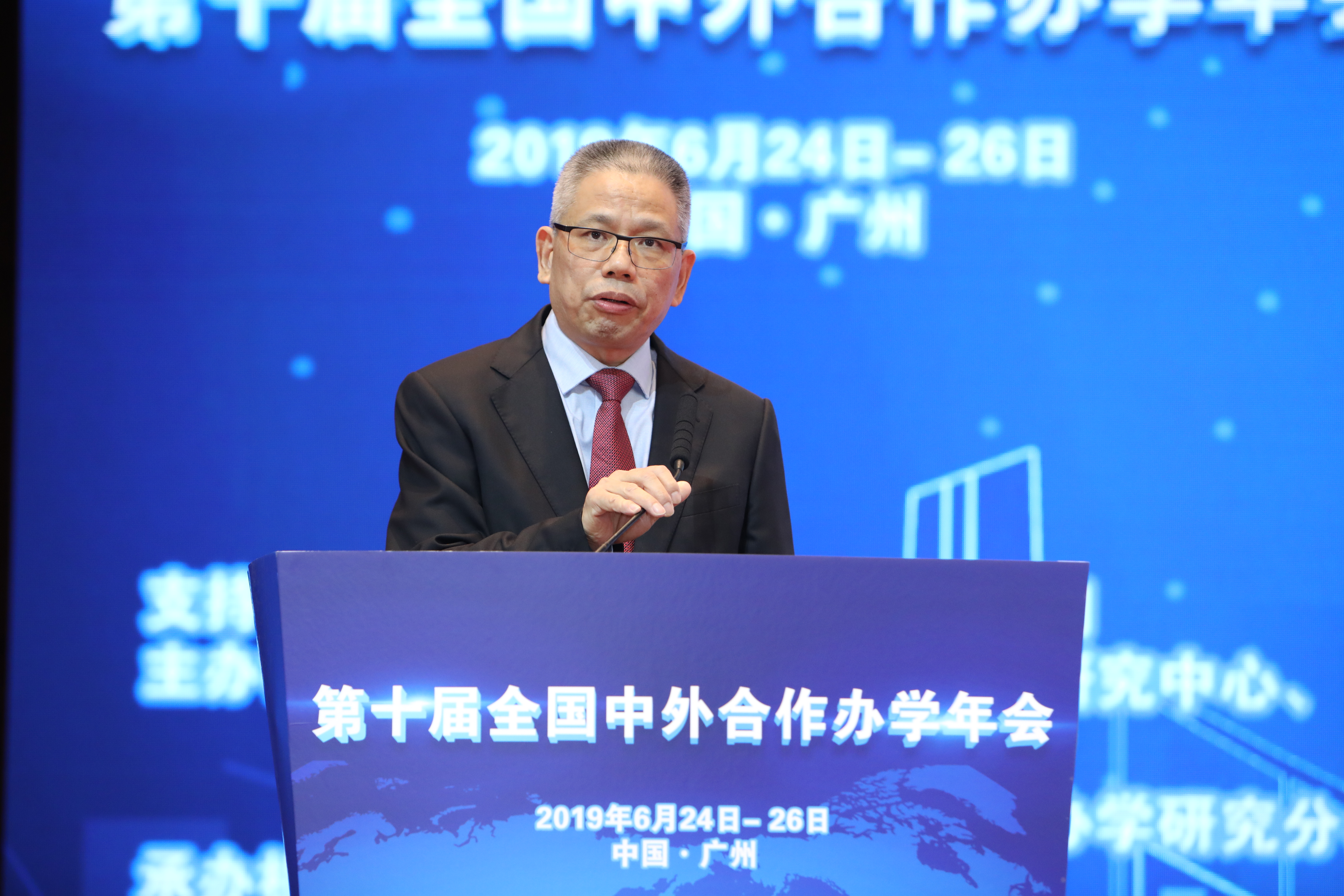 在加快和扩大教育对外开放的新形势下,在广东这个得改革开放风气之先的地方举办本届年会,为政府、中外合作办学者、校长以及专家学者提供高端、深度的对话平台,促进经验交流、规律探索和实质合作,服务政府决策、指导办学实践、培养人才队伍、引导社会舆论,为新时代中外合作办学高水平发展提供专业支持和政策支撑,具有十分重要的意义。