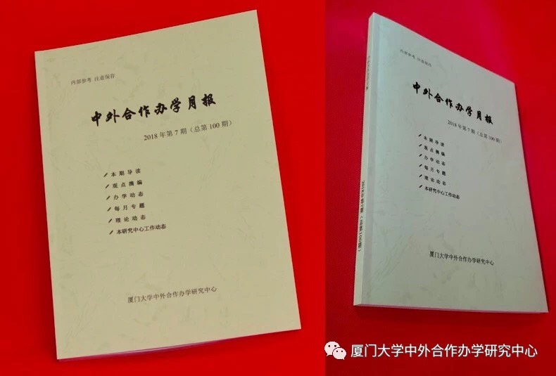 2010年3月19日,我国第一家以中外合作办学为研究对象的专门研究机构——厦门大学中外合作办学研究中心成立。中心主办的《中外合作办学月报》同期诞生。